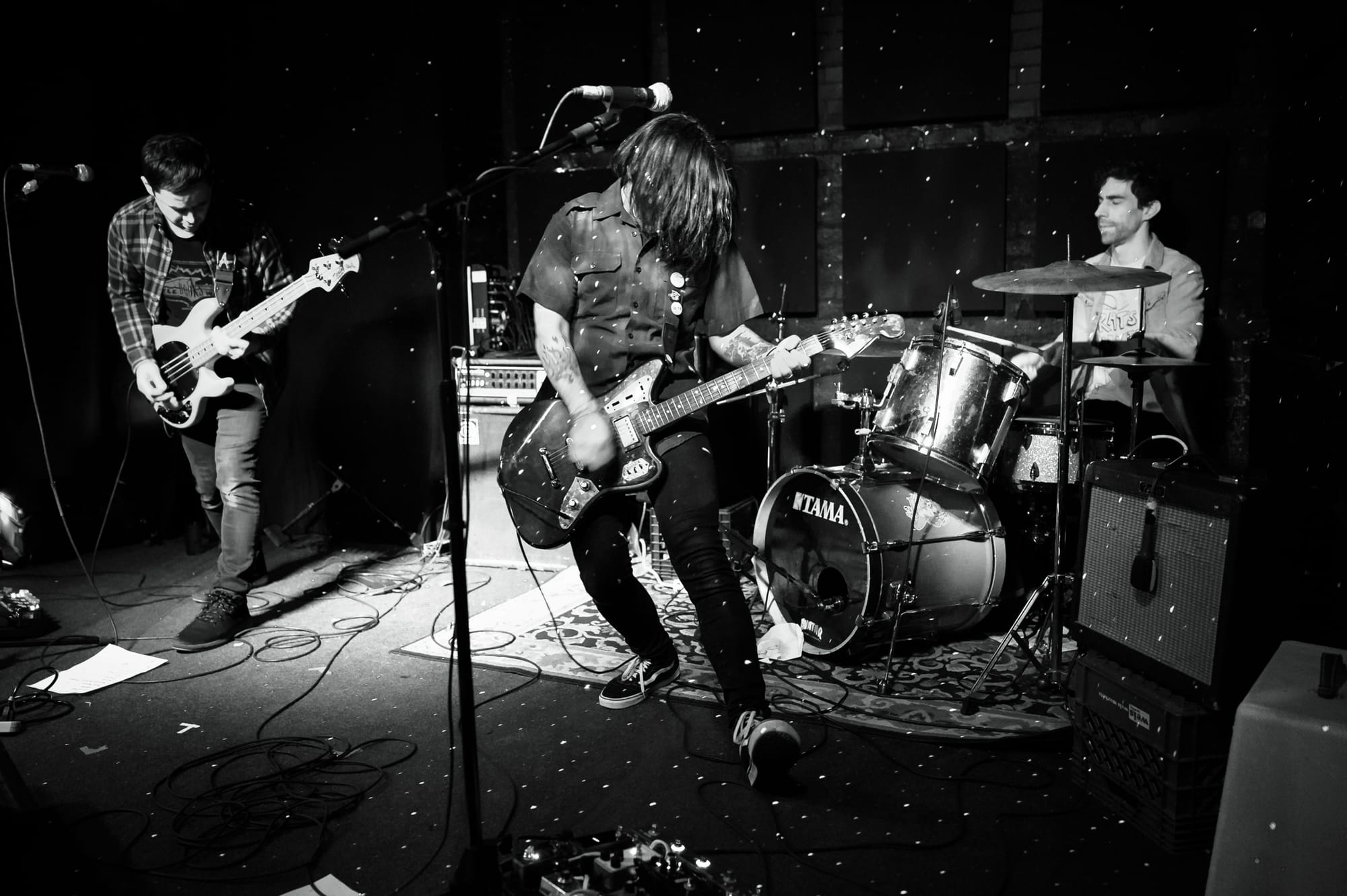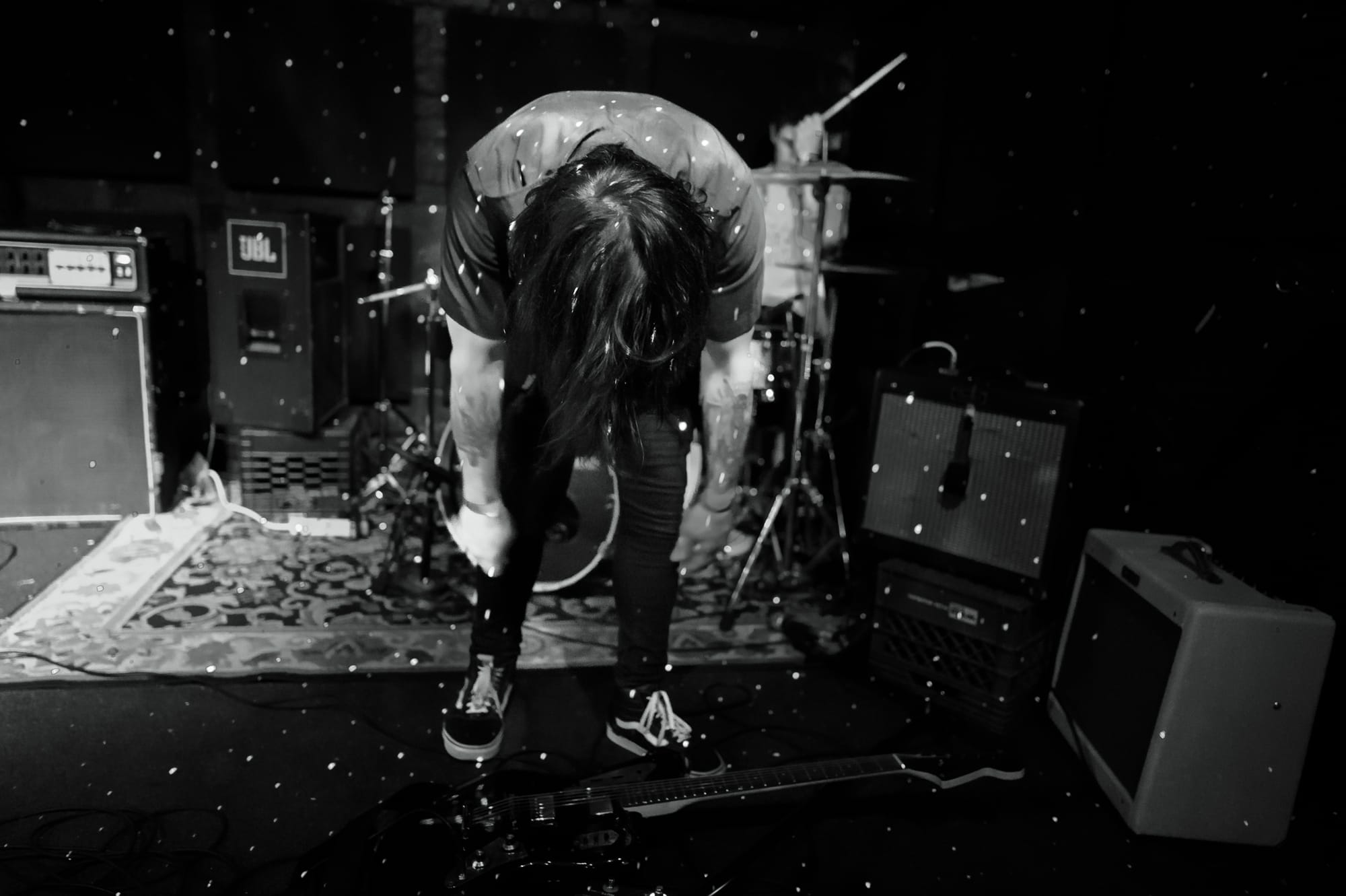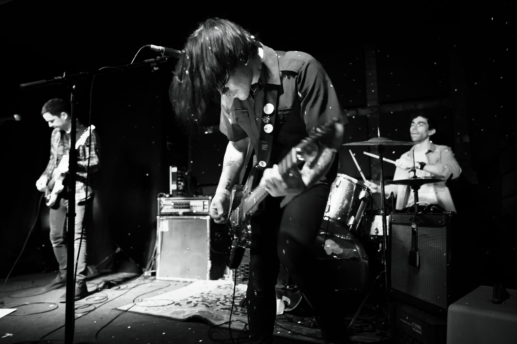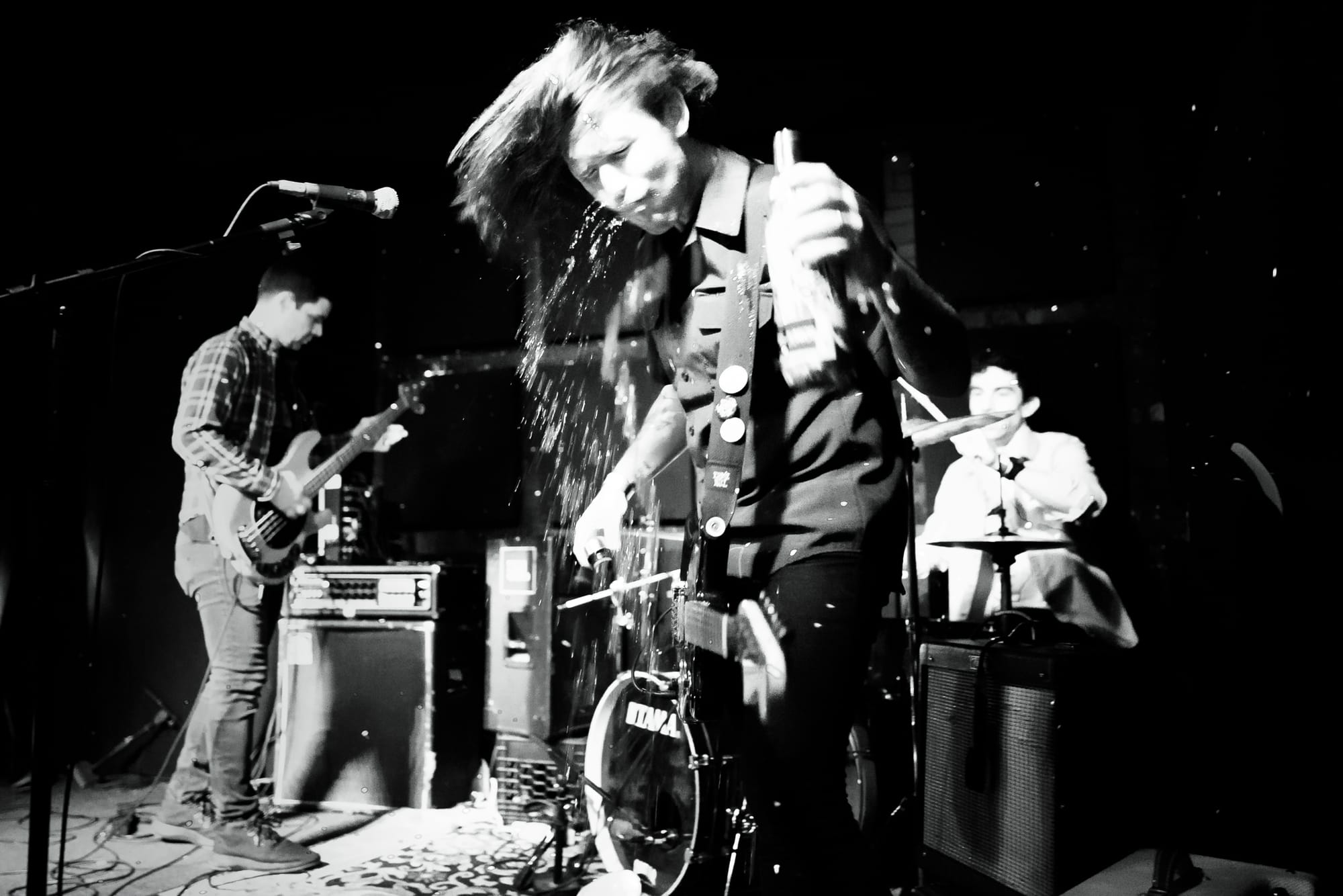 "It's like nihilism and rhinoceros," Mikey tells the crowd. About a hundred Brooklyn rockers finally come outside after a long lockdown. Little pink rhino-shaped soaps are for sale in the back.